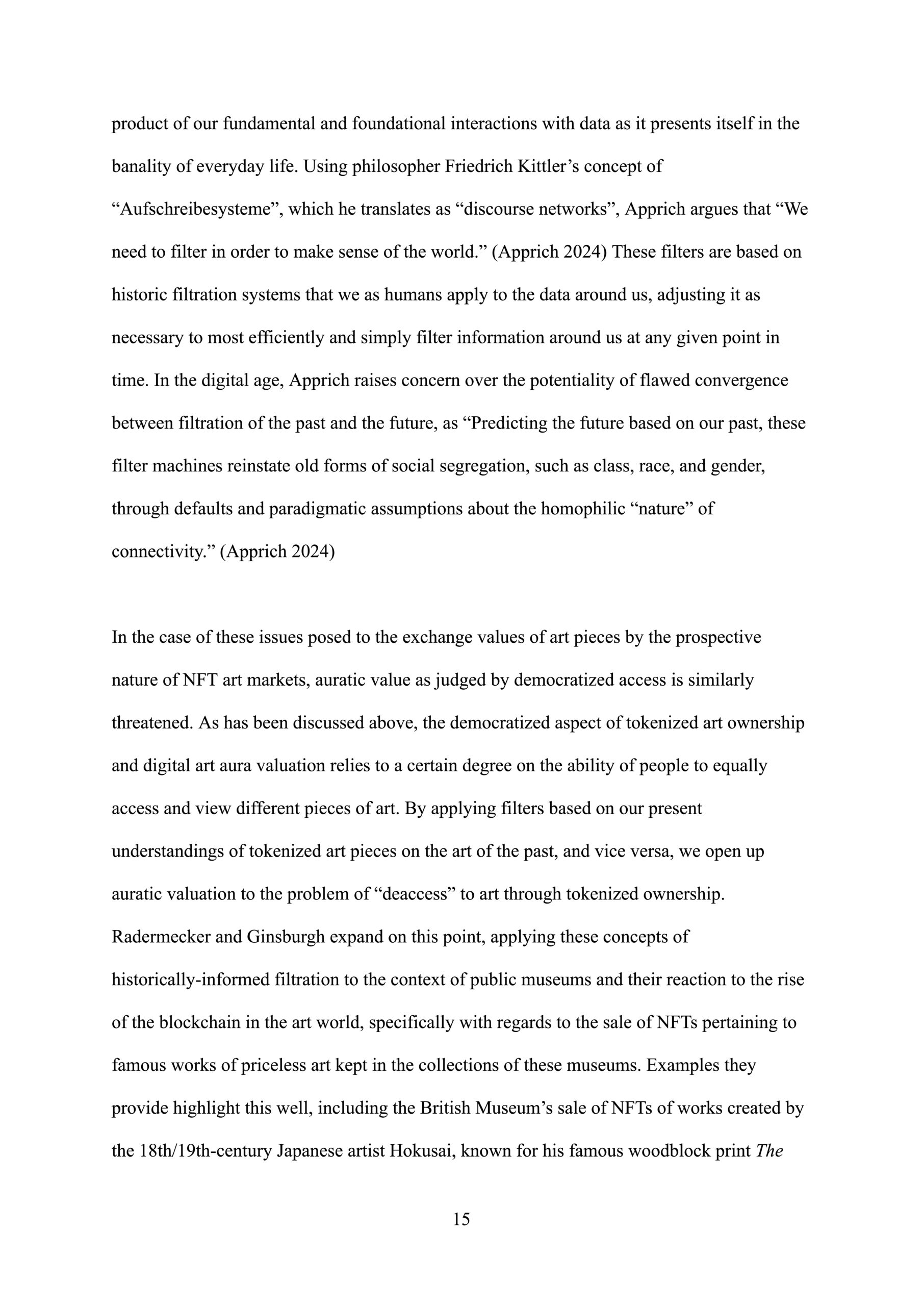 An image depicting page 21 of Zenon Hanappi’s Bachlor’s thesis entitled “Reconceptualizing the thresholds of auratic and exchange value in the post-digital art world”.